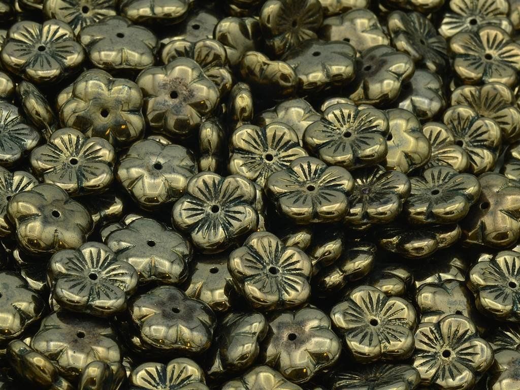 Czech glass beads in the shape of a flower, size 14 mm, bronze colour, hole in the middle, package contents 10 pcs or as described below.