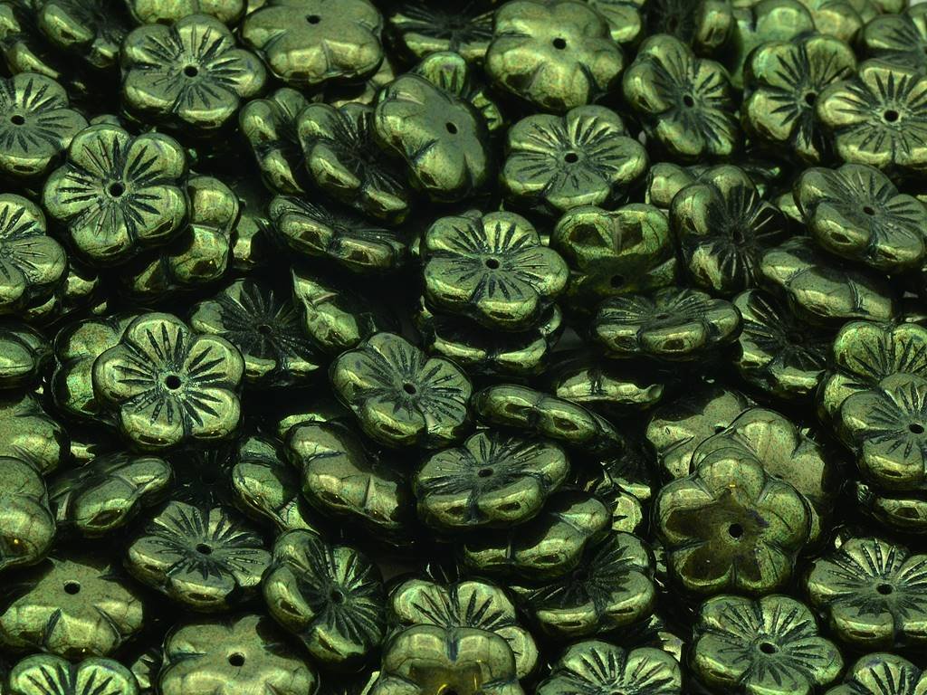 Czech glass beads in the shape of a flower, size 14 mm, jet colour with 14495 finish, hole in the middle, package contents 10 pcs or as described below.