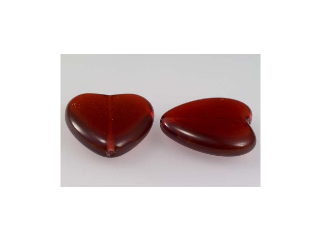 Pressed glass beads heart shape, size 24x22 mm, package contents 1 pc or is described below, color gold ruby